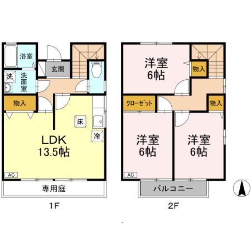 | 間取り詳細 | LDK 13.5畳 、 洋室 6畳 、 洋室 6畳 、 洋室 6畳 |