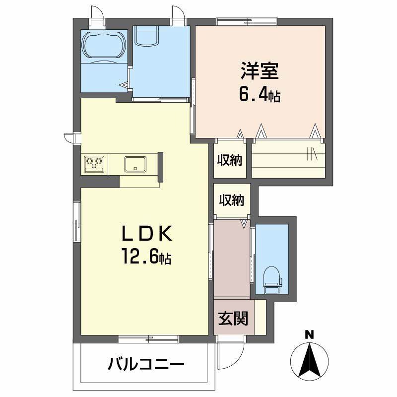 | 間取り詳細 | LDK 12.6畳 、 洋室 6.4畳 |