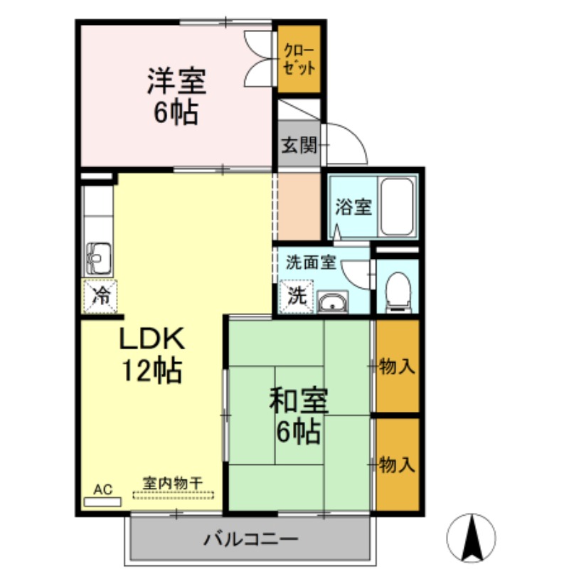 | 間取り詳細 | 和室 6畳 、 洋室 6畳 、 LDK 12畳 、 DK 6畳 |