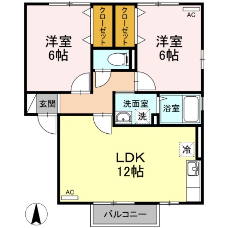 | 間取り詳細 | 洋室 6畳 、 洋室 6畳 、 LDK 12畳 |