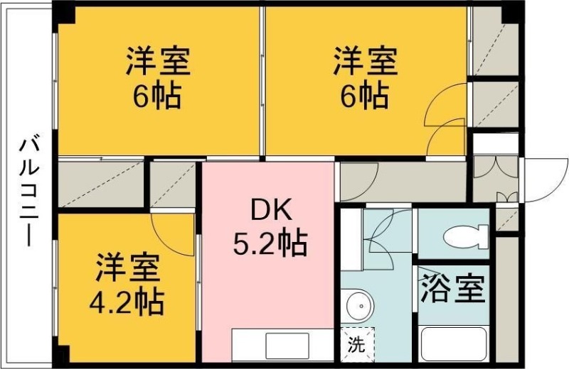 | 間取り詳細 | 洋室 4.2畳 、 洋室 6畳 、 洋室 6畳 、 K 5.2畳 |